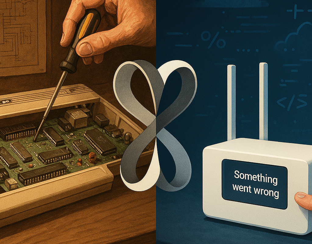 Empiler des couches d’abstraction (frameworks, API, interfaces simplifiées) rend l’usage plus fluide. Mais cela rend aussi la panne inintelligible. Quand votre routeur Google Nest cesse de fonctionner, l’interface dit juste : « quelque chose s’est mal passé ». Aucune explication. Aucune prise. Vous êtes nu face à une boîte noire. L’abstraction devait nous libérer des détails. Elle nous a rendus dépendants de ceux qui contrôlent les détails.